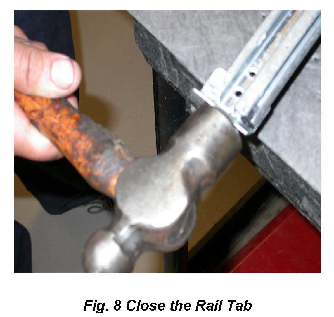 16. Carefully bend the tab back up in its original location with the adjustable wrench. A hammer can be used to carefully tap the Bracket Tab into its final closed position. (Fig 8).