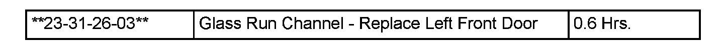 21. Following the procedures in DealerCONNECT > TechCONNECT under: Service Info > 23 - Body > Door-Front / Rear > Channel, Door Glass, to replace the Glass Run Channel Seal.