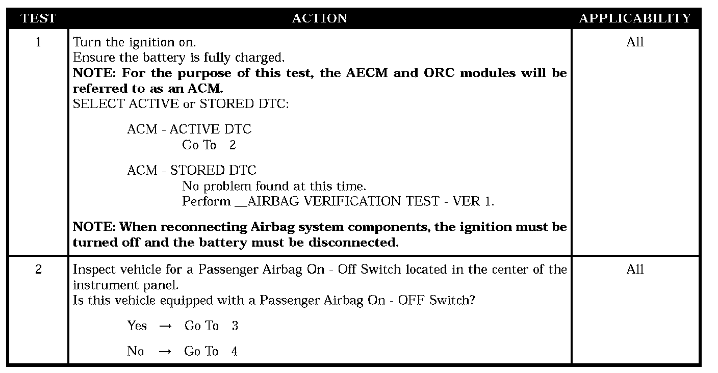 When the ACM is not configured for an ON - OFF switch, the ACM monitors the Passenger Airbag On - Off Switch inputs to determine if a switch is present.