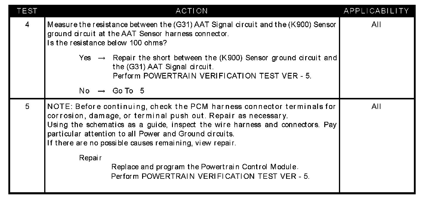 - (G31) AAT signal circuit shorted to the (K900) sensor ground