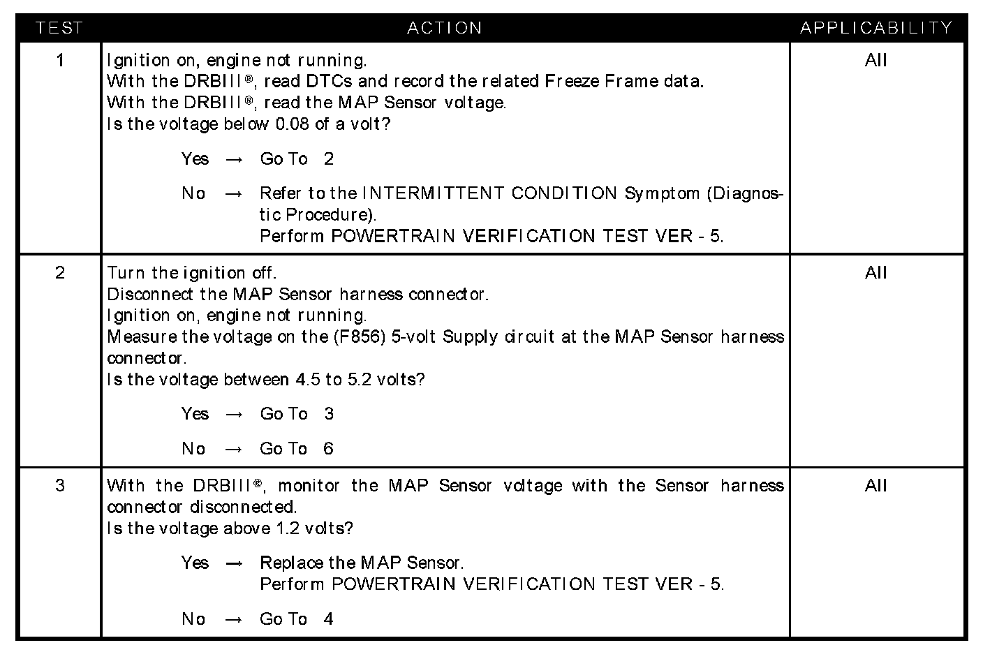 - MAP sensor voltage below 0.08 of a volt