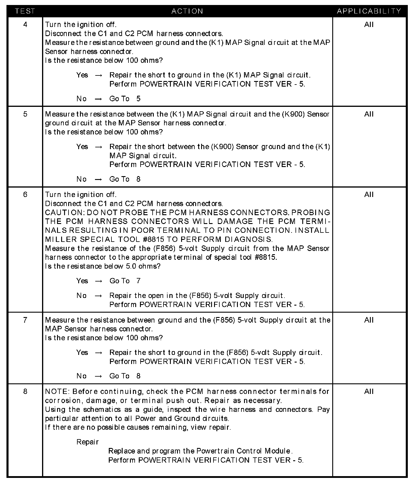 - (K1) MAP signal circuit shorted to the (K900) sensor ground circuit