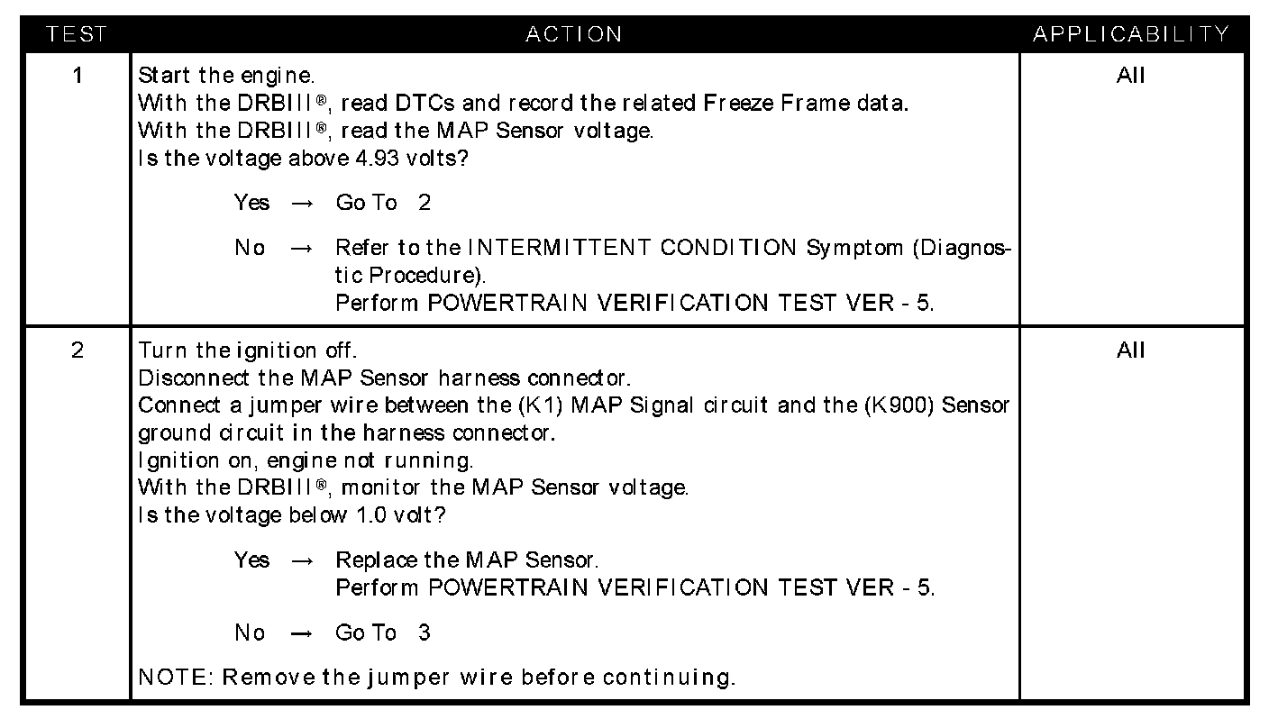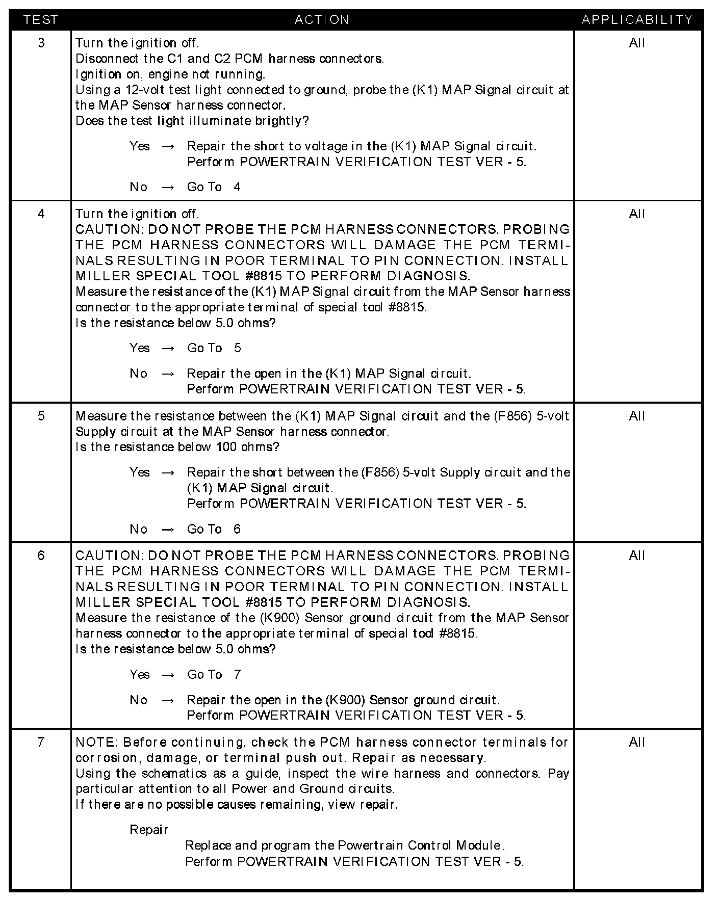 - (K1) MAP signal circuit shorted to the (F856) 5-volt supply circuit