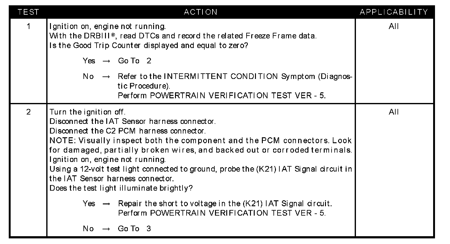 - (K21) IAT signal circuit shorted to the (K900) sensor ground