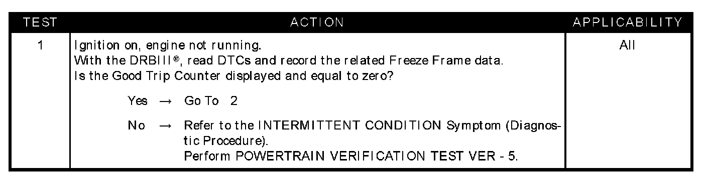 With the engine running >1312 RPM, coolant temp >65.25° C (149.45° F), MAF >250mg/tdc and no ECT, MAF or CAM Sensor DTCs.