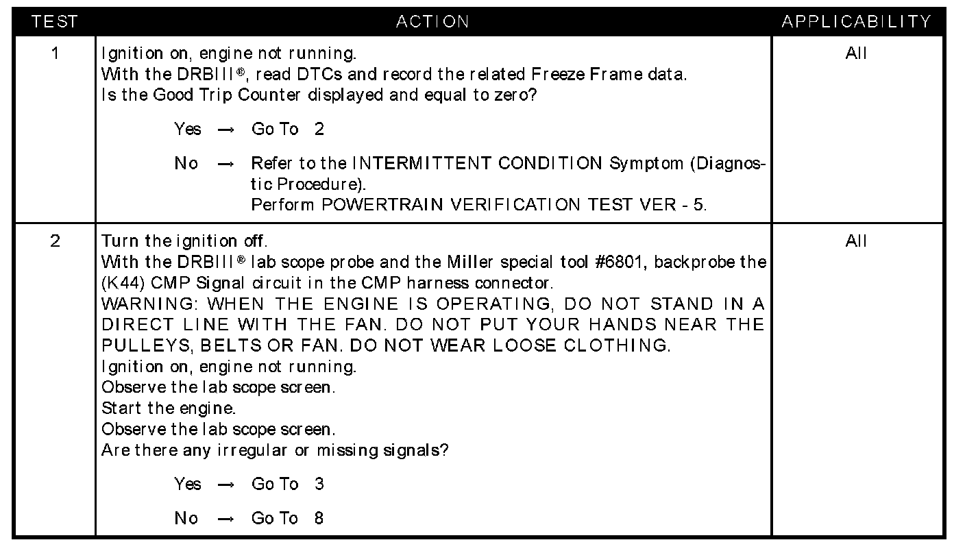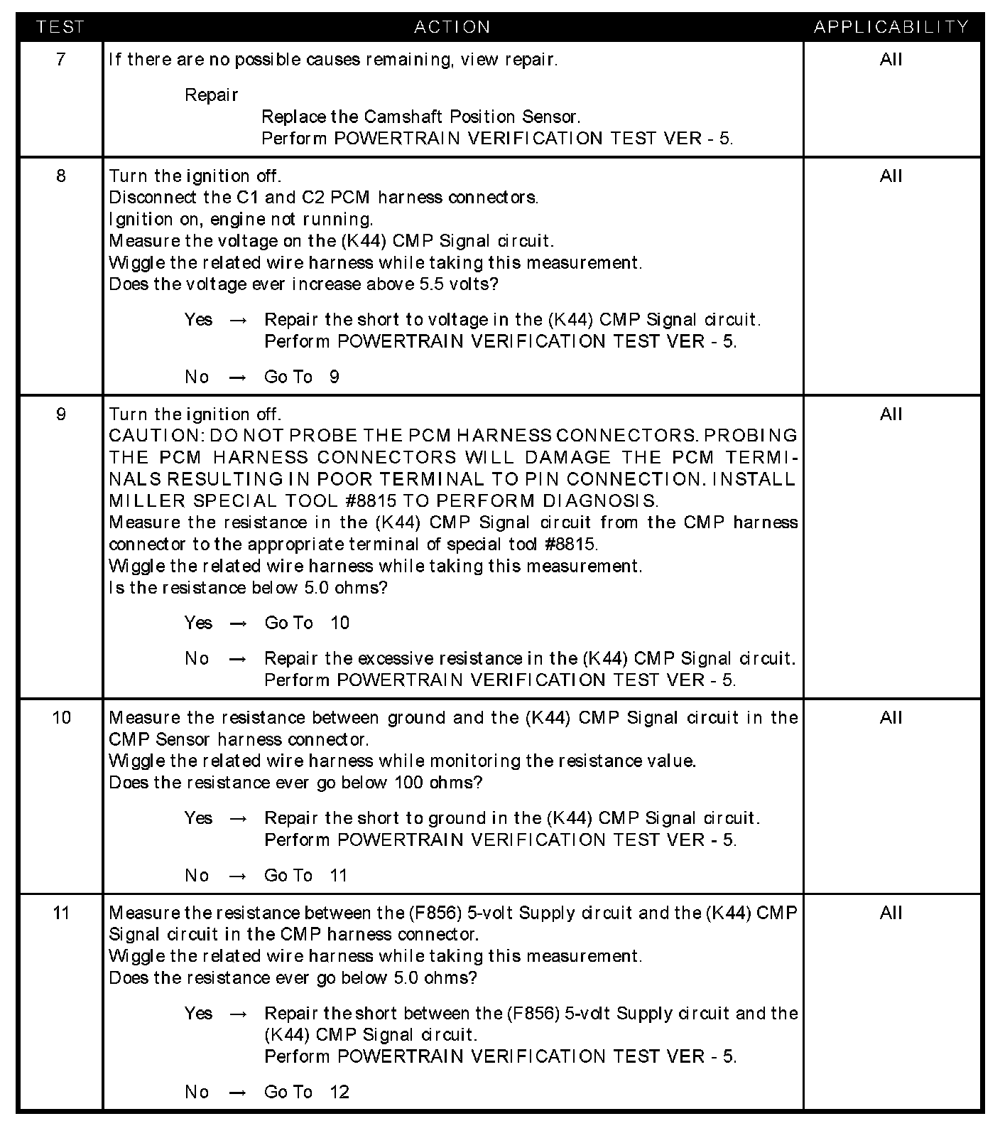 - (K44) CMP signal circuit shorted to the (F856) 5-volt supply circuit