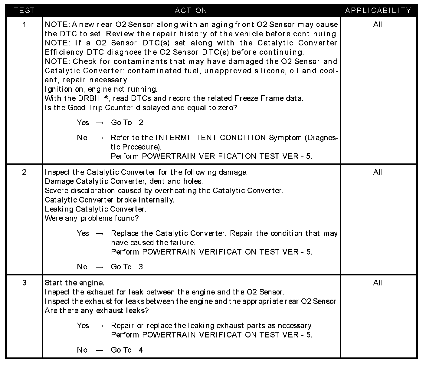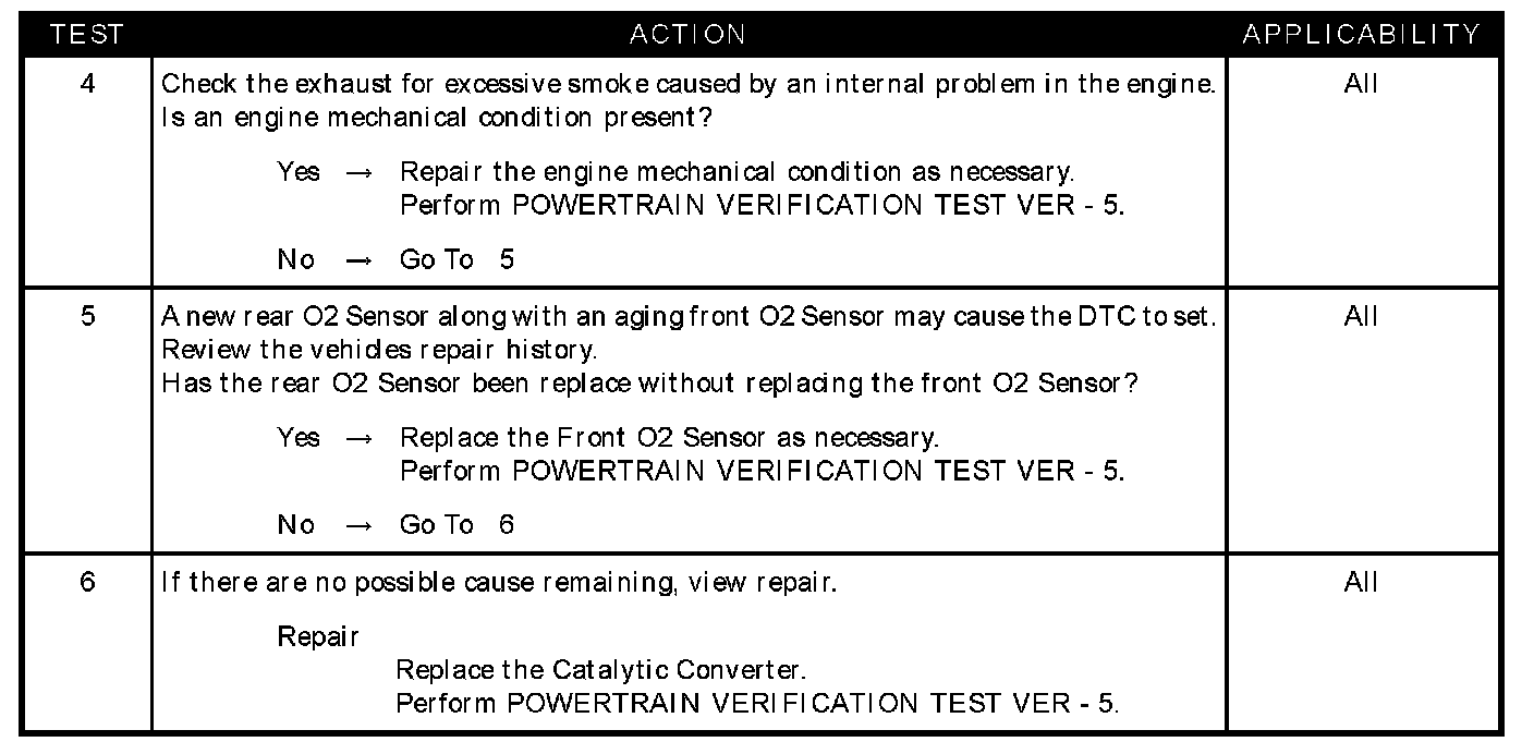 This symptom is diagnosed using the test P0420-CATALYST 1/1 EFFICIENCY.