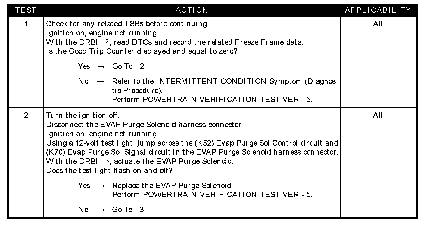 - (K70) EVAP purge SOL signal circuit shorted to ground