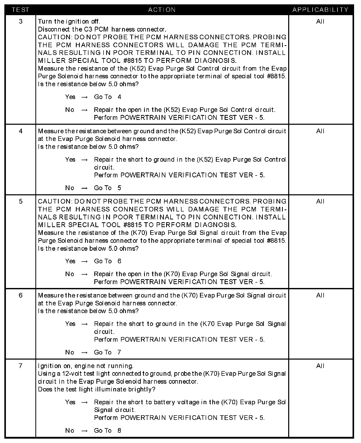 - (K70) EVAP purge SOL signal circuit shorted to battery voltage