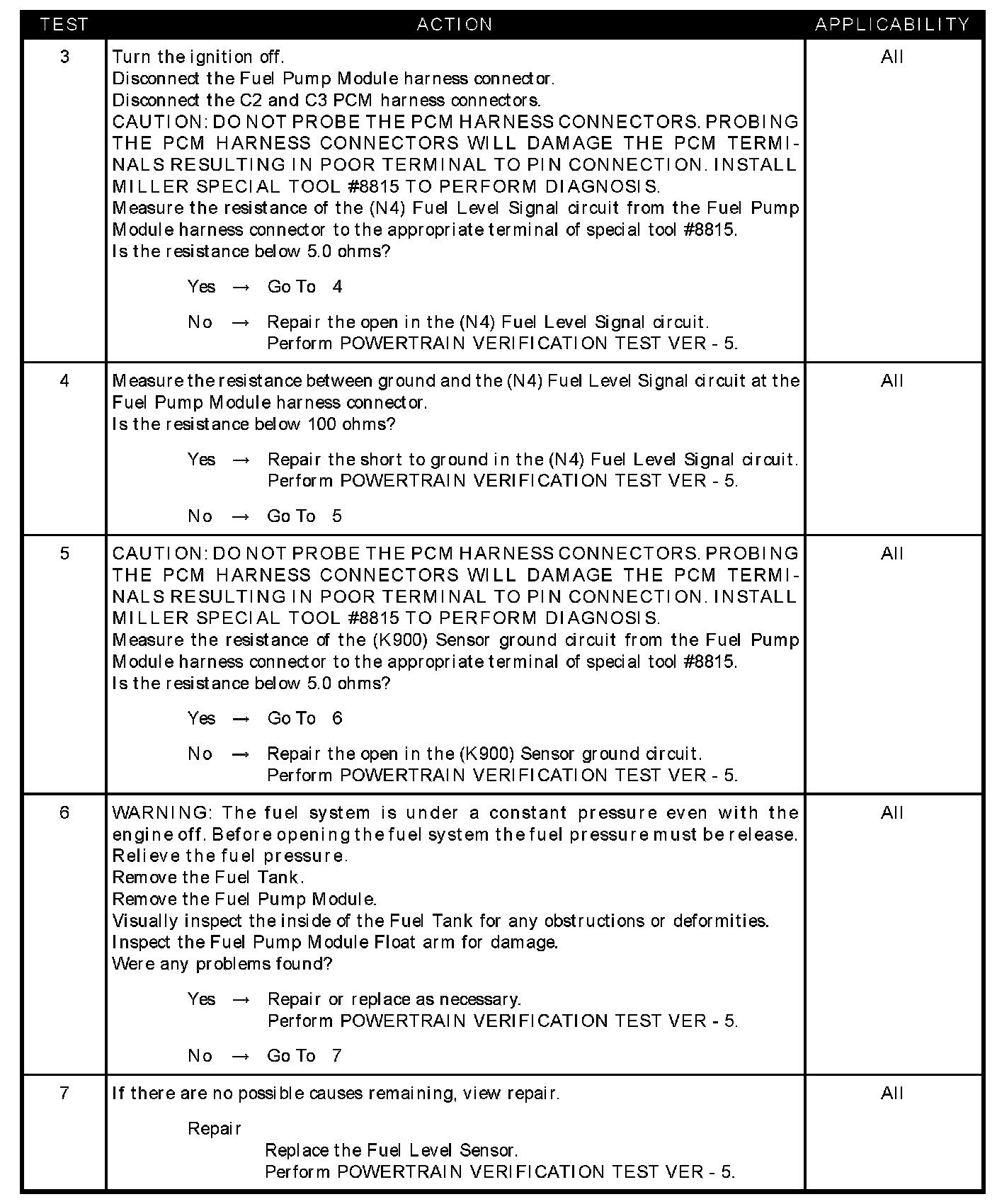 TEST #1: With the ignition on, the fuel level is compared to the previous key down after a 20 second delay. TEST #2: The PCM monitors the fuel level at ignition on.