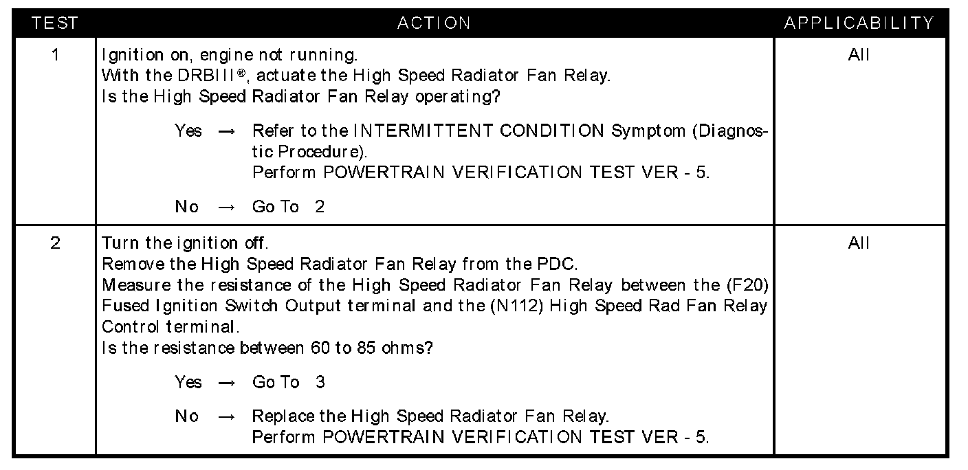 - (N112) High speed rad fan relay control circuit open