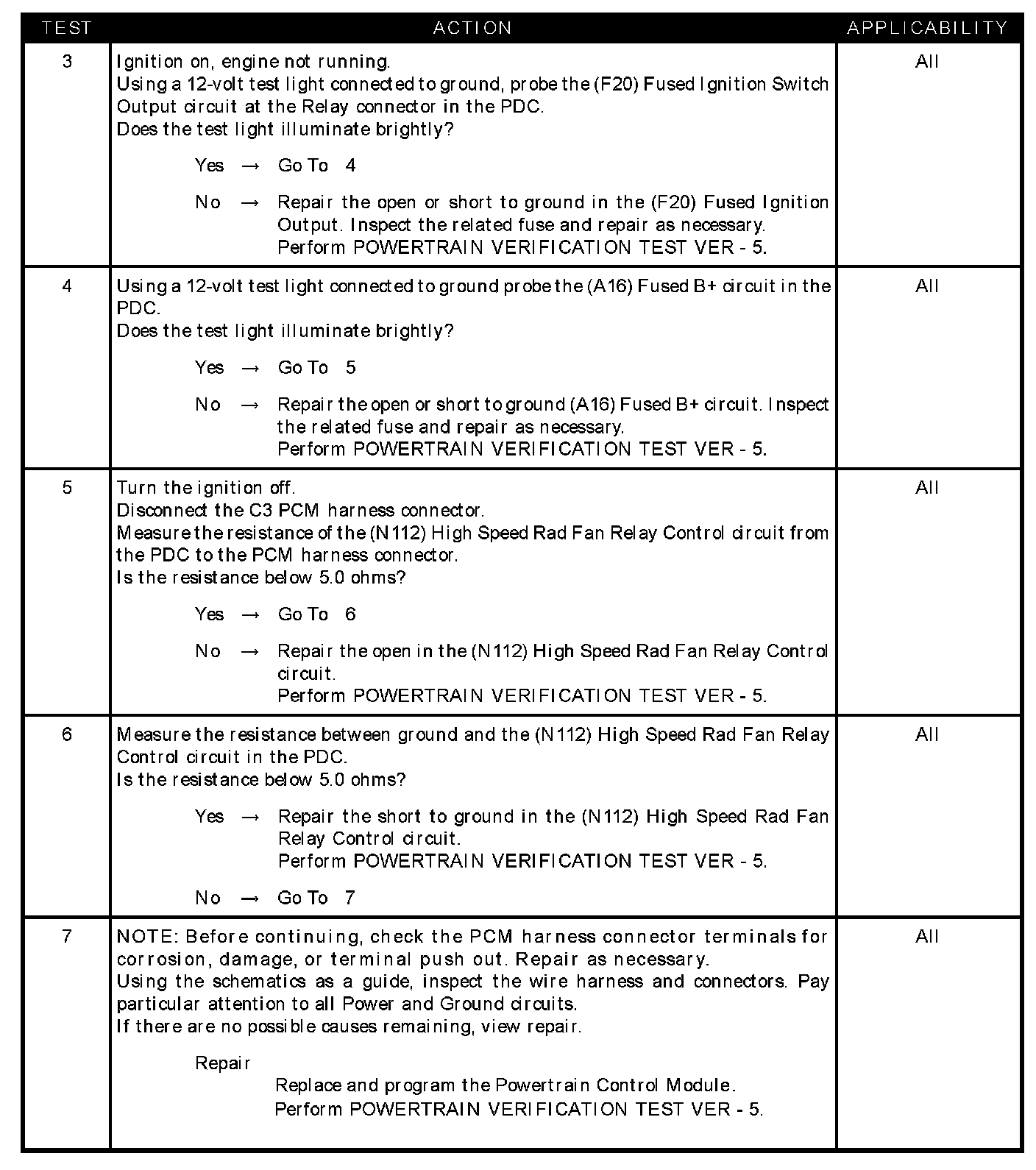 - (N112) High speed rad fan relay control circuit short to ground