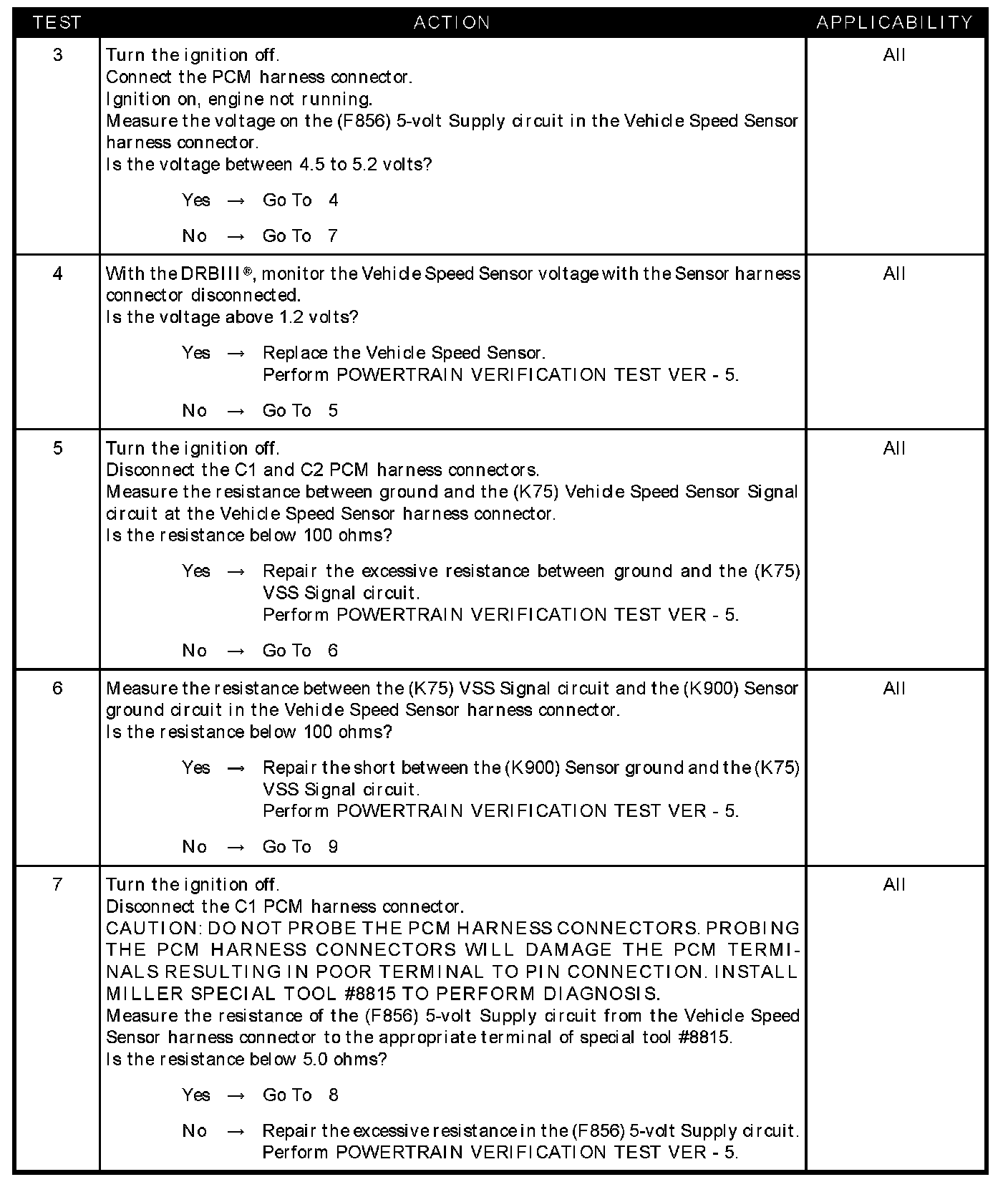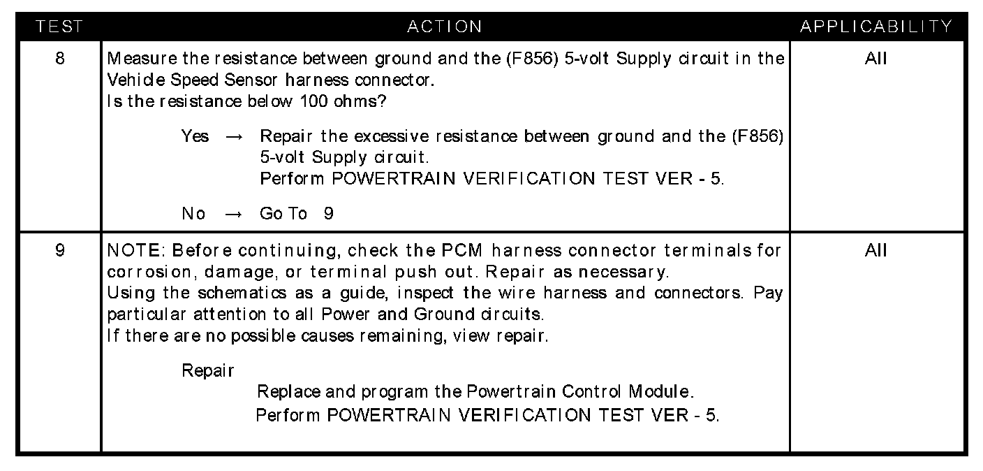 - Resistance between ground and the (F856) 5-volt supply circuit