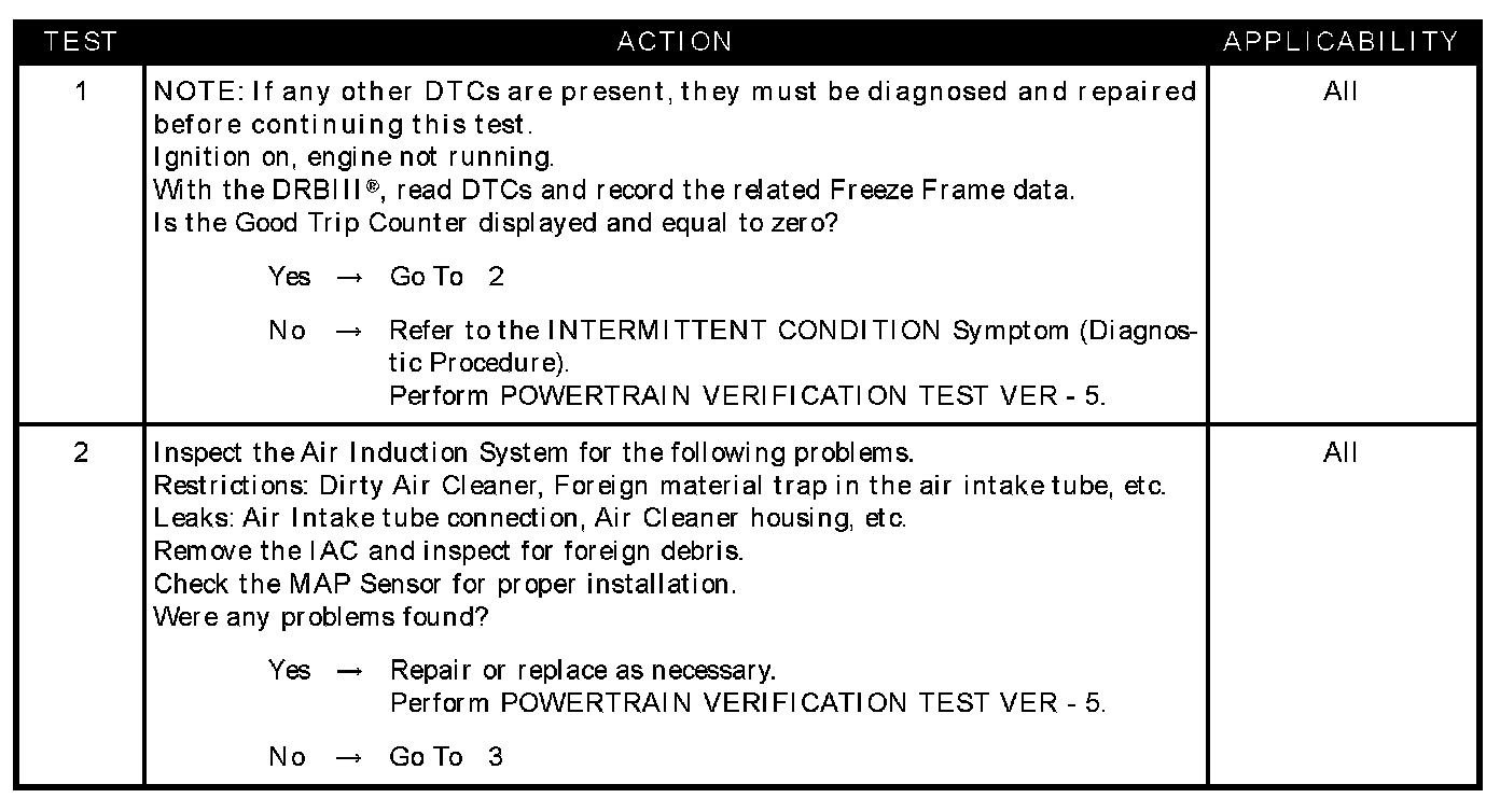With the engine running at idle, MAF <250 mg/tdc, air temp >-17.8° C (0° F) and <-7° C (19.4° F) enable after coolant temp >70° C (158° F) or air temp >-7° C (19.4° F), coolant temp >-7° C (19.4° F) <130° C (266° F), canister purge <100% duty cycle, and no VSS, MAF/MAP, ECT, TPS, ETC, CRK Sensor DTCs nor any fuel system or injector DTCs.