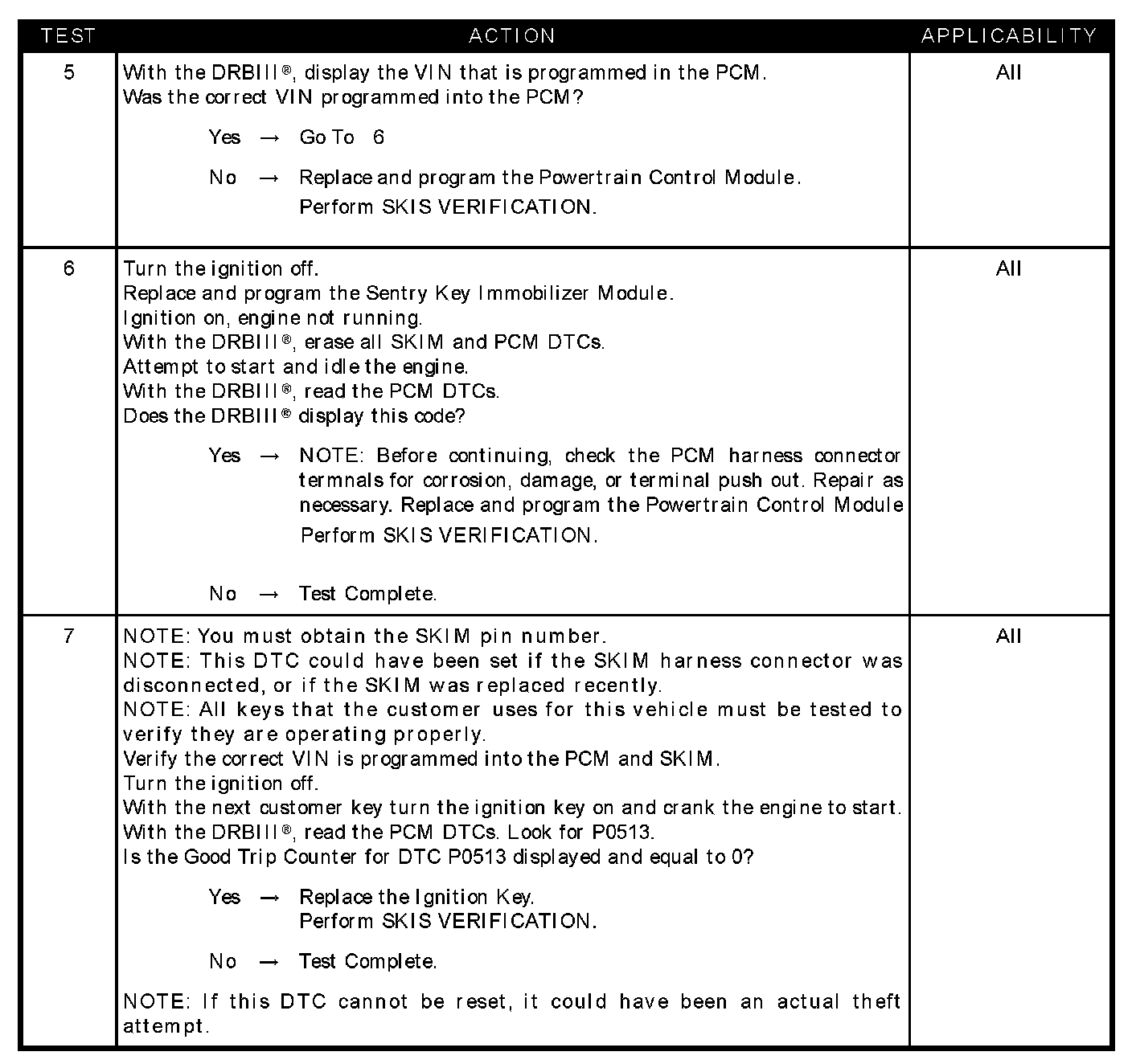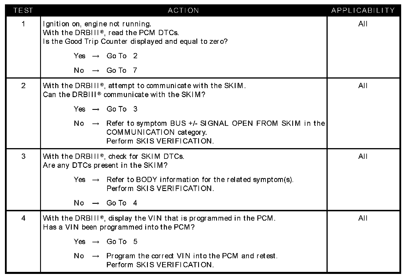 - SKIM trouble codes set