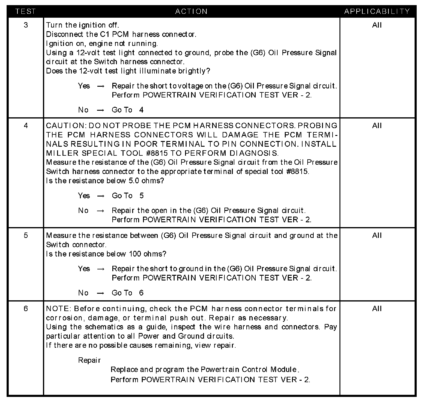 - (G6) Oil pressure signal circuit shorted to ground
