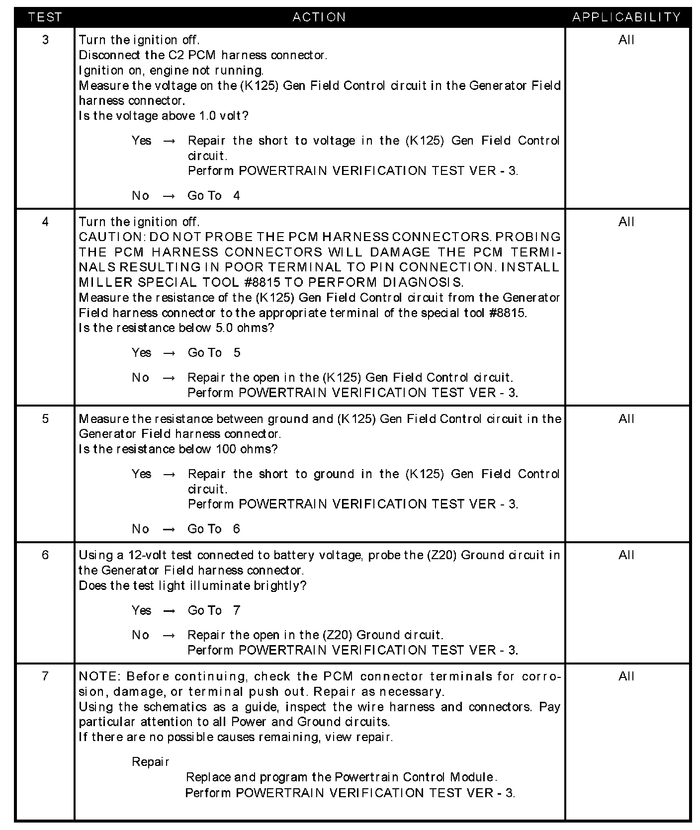 - (K125) GEN field control circuit shorted to battery voltage
