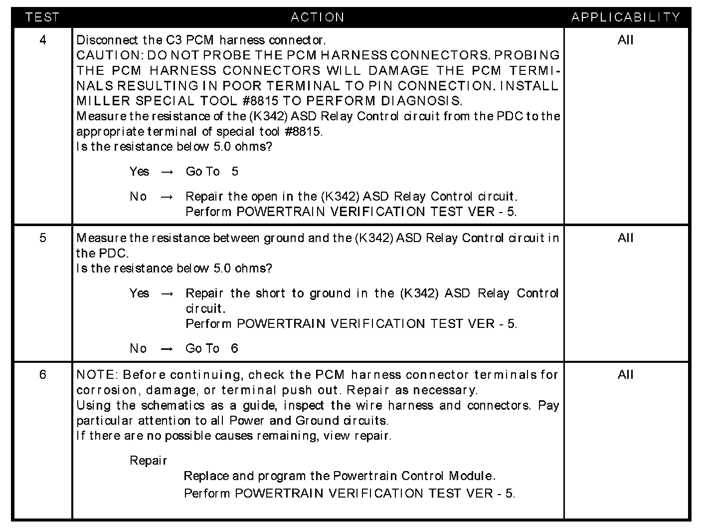 - (K342) ASD relay control circuit shorted to ground