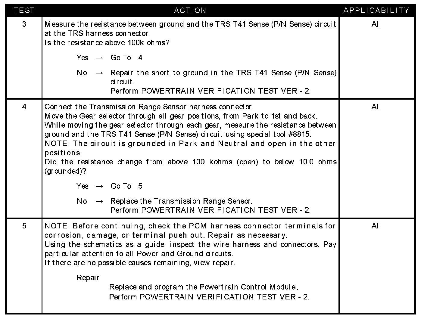 - TRS T41 sense (P/N SENSE) circuit shorted to ground