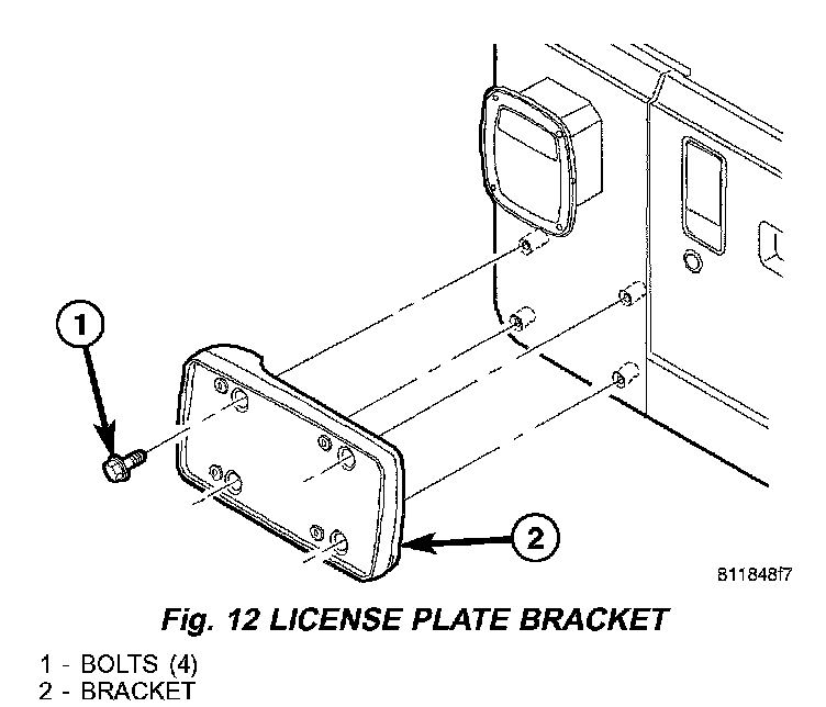 2. Remove the four screws attaching the license plate bracket to the body (Fig. 12).