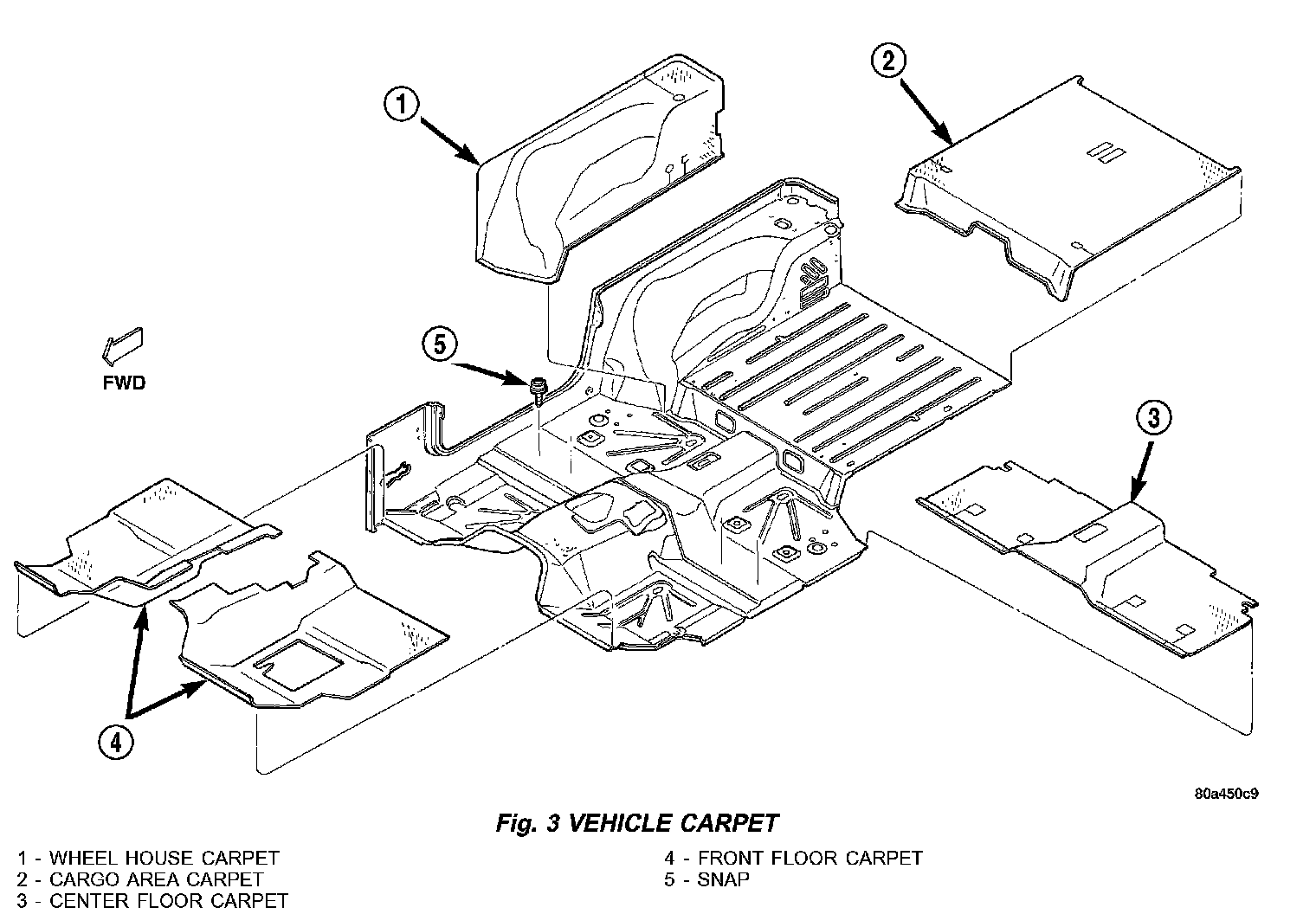 5. Separate the carpet from the vehicle (Fig. 3).