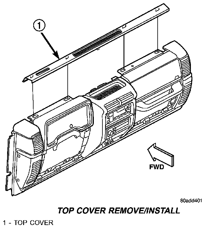 TOP COVERWARNING: ON VEHICLES EQUIPPED WITH AIRBAGS, DISABLE THE AIRBAG SYSTEM BEFORE ATTEMPTING ANY STEERING WHEEL, STEERING COLUMN, OR INSTRUMENT PANEL COMPONENT DIAGNOSIS OR SERVICE. DISCONNECT AND ISOLATE THE BATTERY NEGATIVE (GROUND) CABLE, THEN WAIT TWO MINUTES FOR THE AIRBAG SYSTEM CAPACITOR TO DISCHARGE BEFORE PERFORMING FURTHER DIAGNOSIS OR SERVICE. THIS IS THE ONLY SURE WAY TO DISABLE THE AIRBAG SYSTEM. FAILURE TO TAKE THE PROPER PRECAUTIONS COULD RESULT IN ACCIDENTAL AIRBAG DEPLOYMENT AND POSSIBLE PERSONAL INJURY.