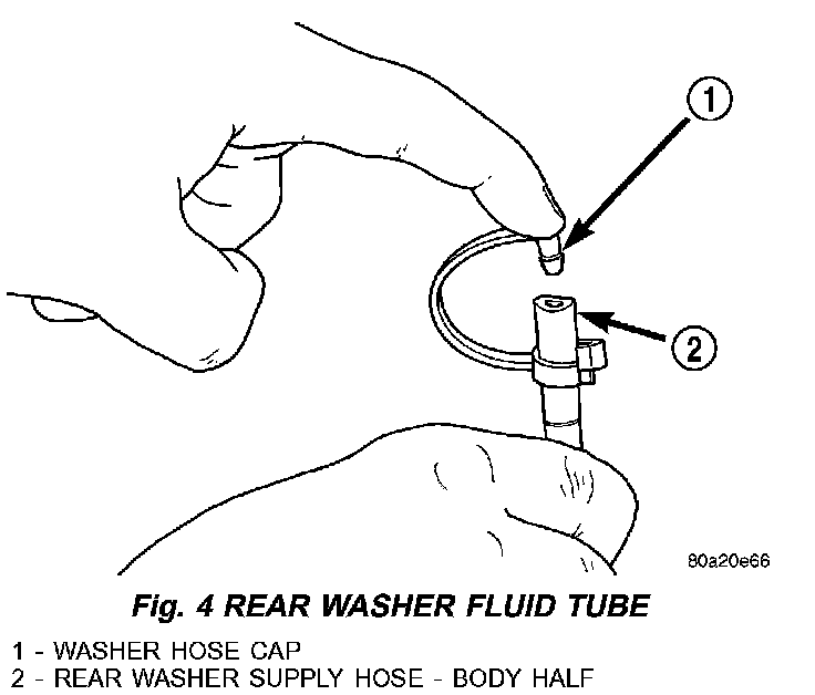 4. Disconnect the rear washer fluid hose. Cap the hose to prevent washer fluid leakage (Fig. 4).