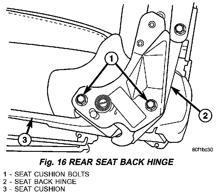 2. Remove the bolts attaching the seat back assembly to the seat cushion and remove the seat back. (Fig. 16)