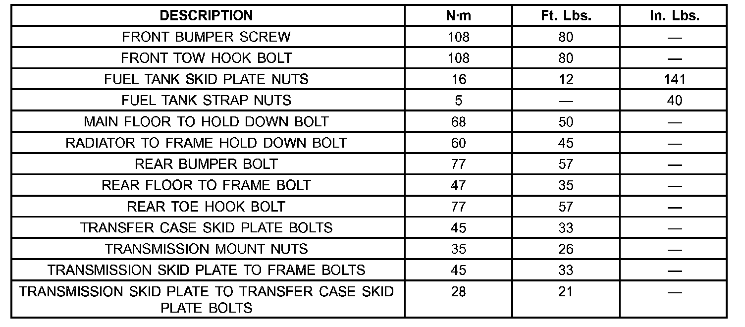 TORQUE SPECIFICATIONS