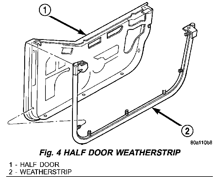 3. Remove the push-in fasteners attaching the weatherstrip to the door. (Fig. 4)
