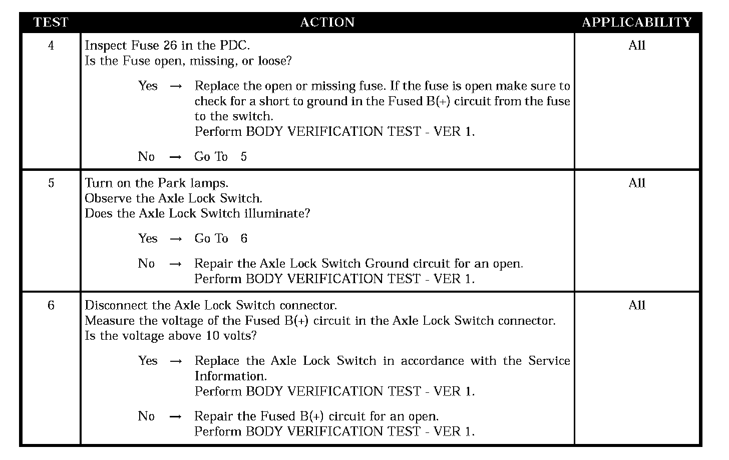 - FUSED B(+) CIRCUIT OPEN TO AXLE LOCK SWITCH
