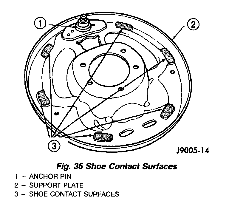 3. Apply multipurpose grease to brake shoe contact surfaces of support plate.