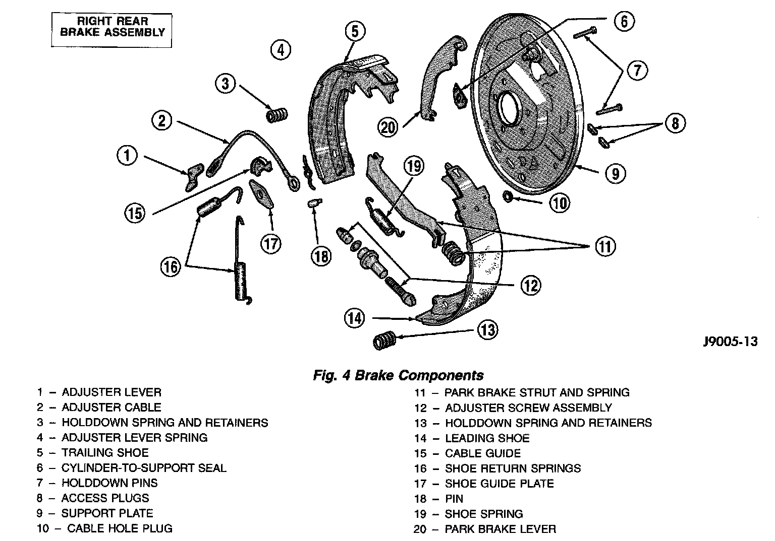 8. Install brake shoes on support plate. Secure shoes with new hold-down springs, pins and retainers.