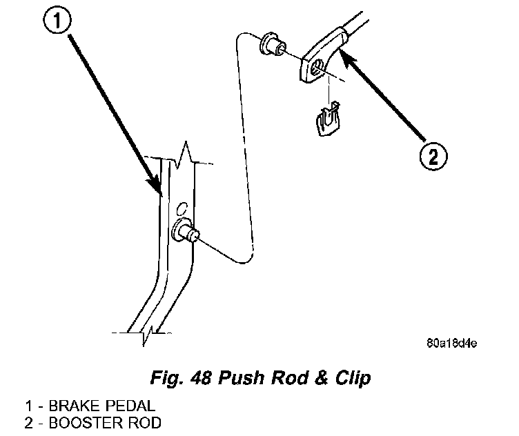 3. Remove retaining clip that secures booster push rod to brake pedal and slide the rod off the pin.