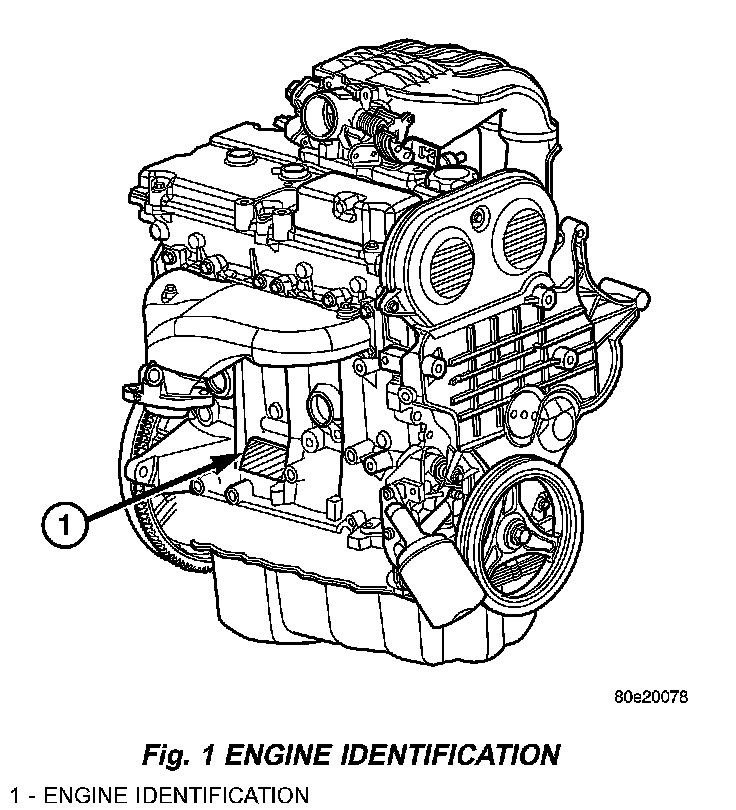 The engine identification number is located on the rear of the cylinder block (Fig. 1).