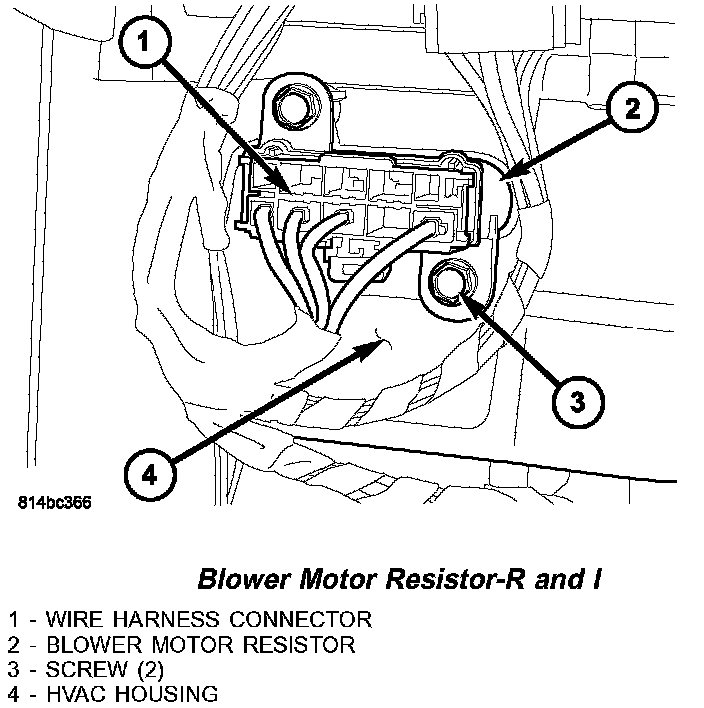 - THE BLOWER MOTOR RESISTOR MAY GET VERY HOT DURING NORMAL OPERATION. IF THE BLOWER MOTOR WAS TURNED ON PRIOR TO SERVICING THE BLOWER MOTOR RESISTOR, WAIT FIVE MINUTES TO ALLOW THE BLOWER MOTOR RESISTORS TO COOL BEFORE PERFORMING DIAGNOSIS OR SERVICE. FAILURE TO TAKE THIS PRECAUTION CAN RESULT IN POSSIBLE PERSONAL INJURY.
