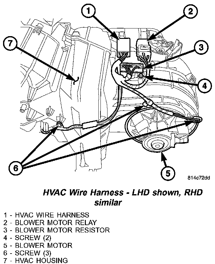 HVAC Wire Harness - LHD Shown, RHD Similar: