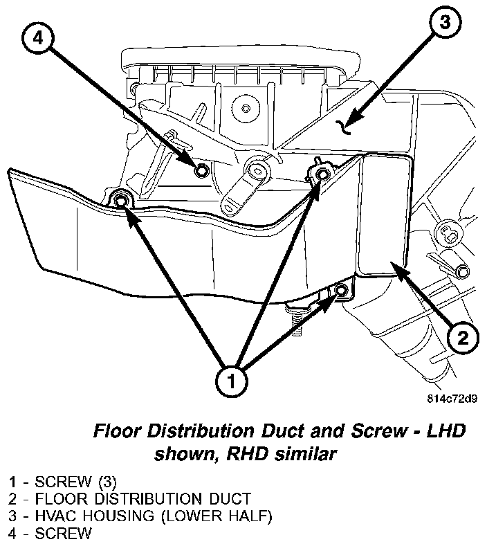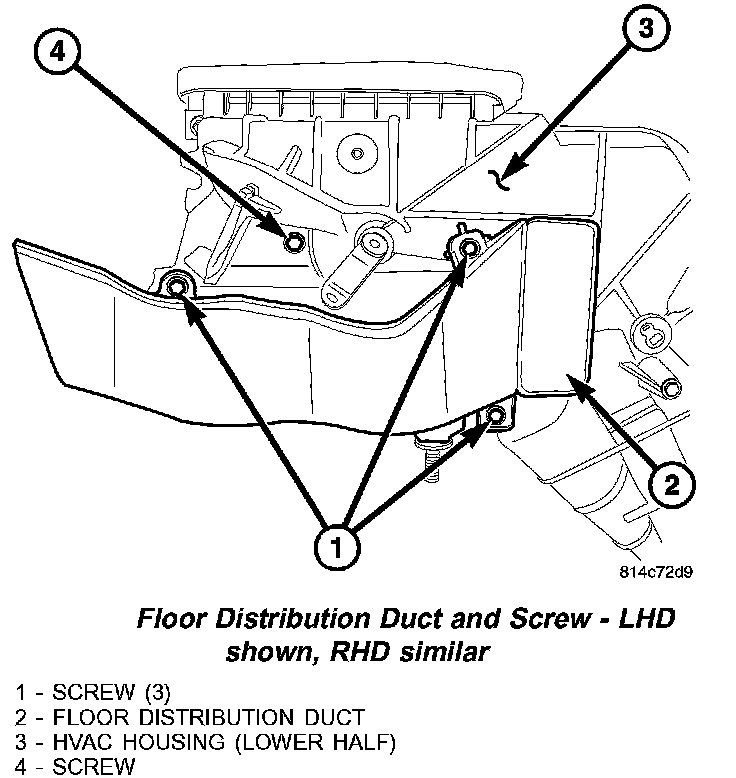 Floor Distribution Duct And Screw - LHD Shown, RHD Similar: