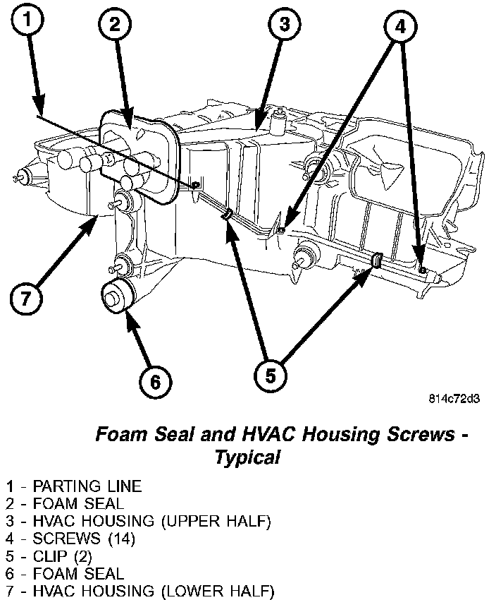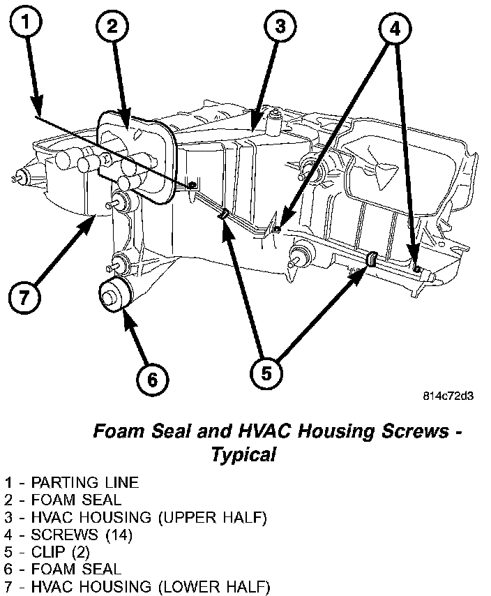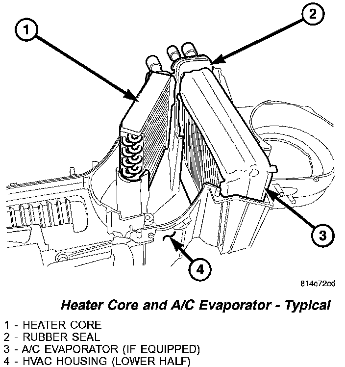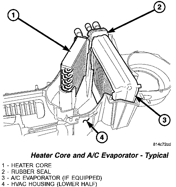 - The HVAC housing must be removed from the vehicle and disassembled for service of the A/C evaporator, heater core, blend-air and mode-air doors.