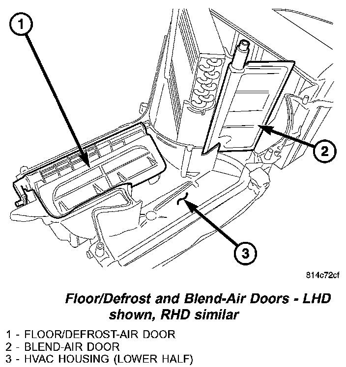 Floor/Defrost And Blend-Air Doors - LHD Shown, RHD Similar: