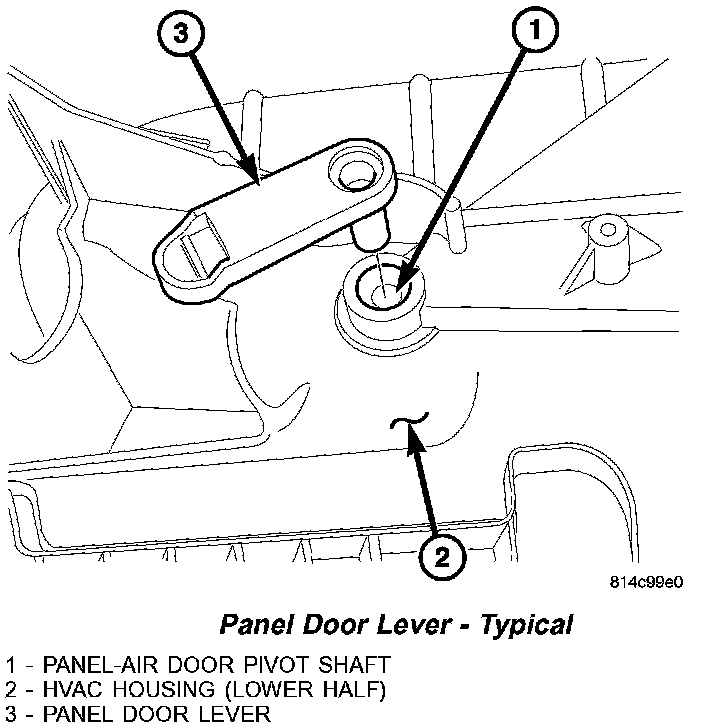 5. Align the panel door lever with the panel-air door pivot shaft and install the lever into the shaft. Be sure that the lever retaining tab fully engages the pivot shaft.