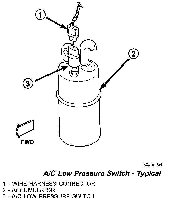 NOTE: It is not necessary to discharge the refrigerant system to replace the A/C low pressure switch.