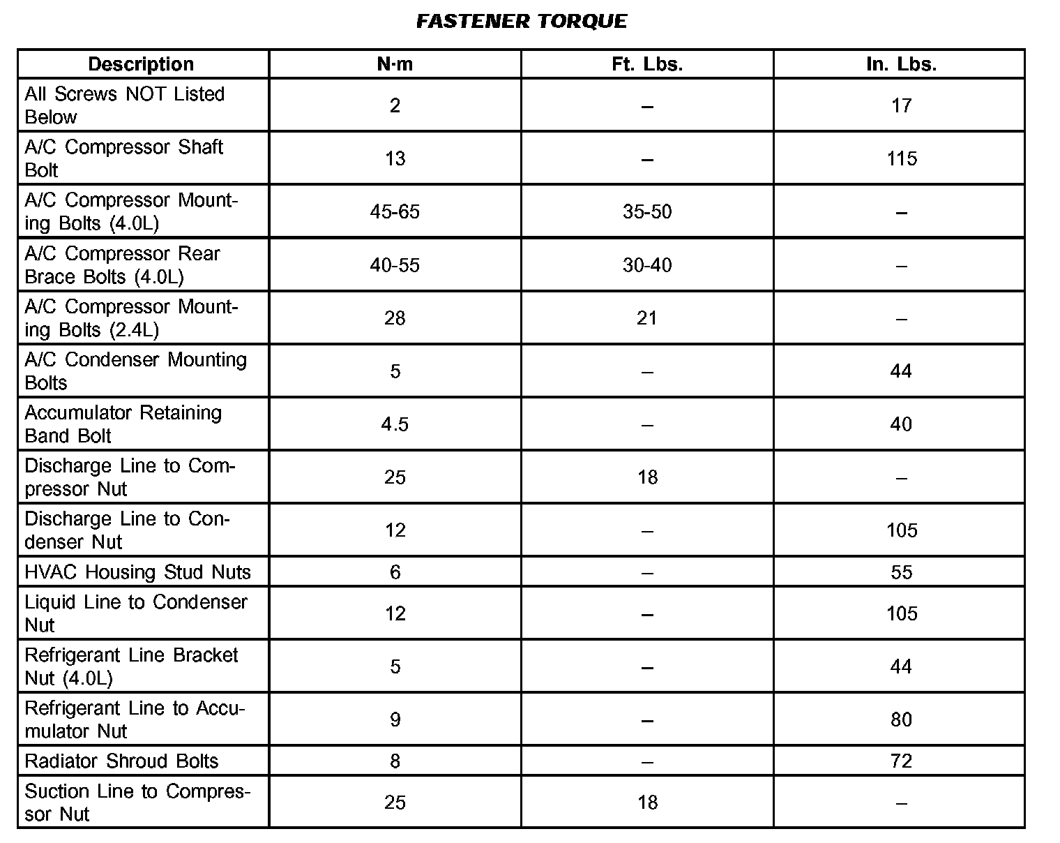 Fastener Torque: