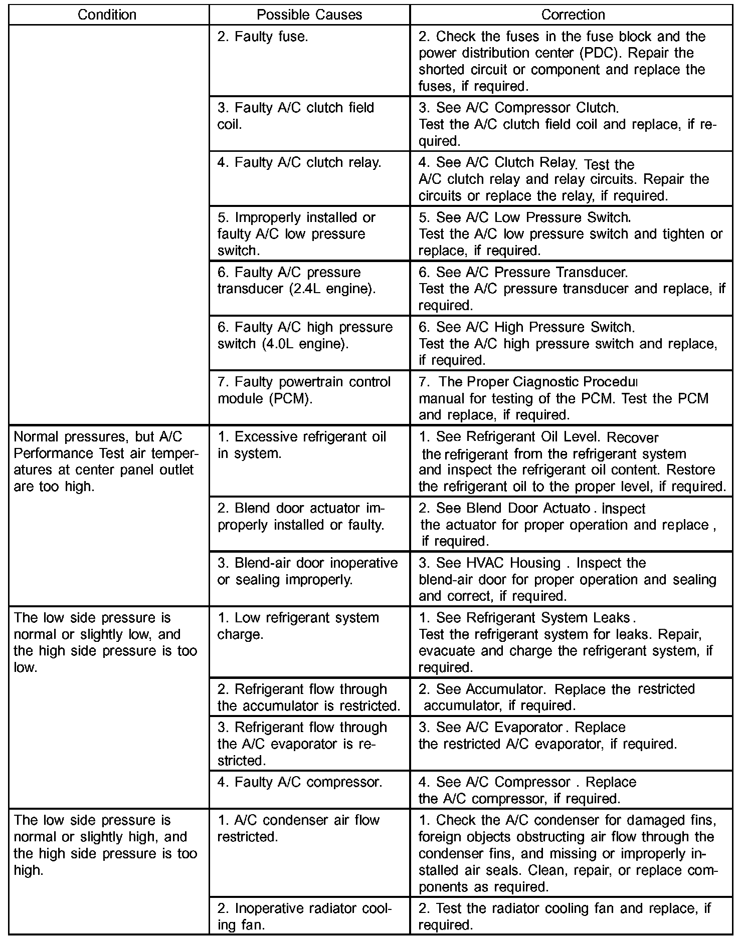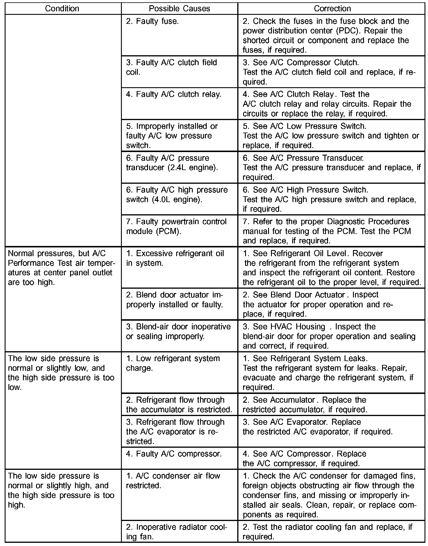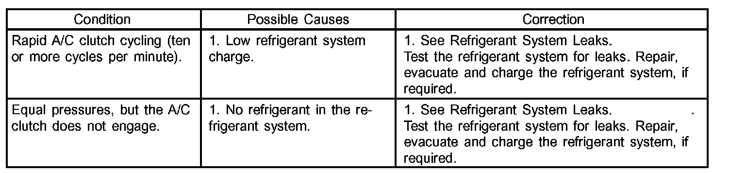 A/C Performance Temperature And Pressure: