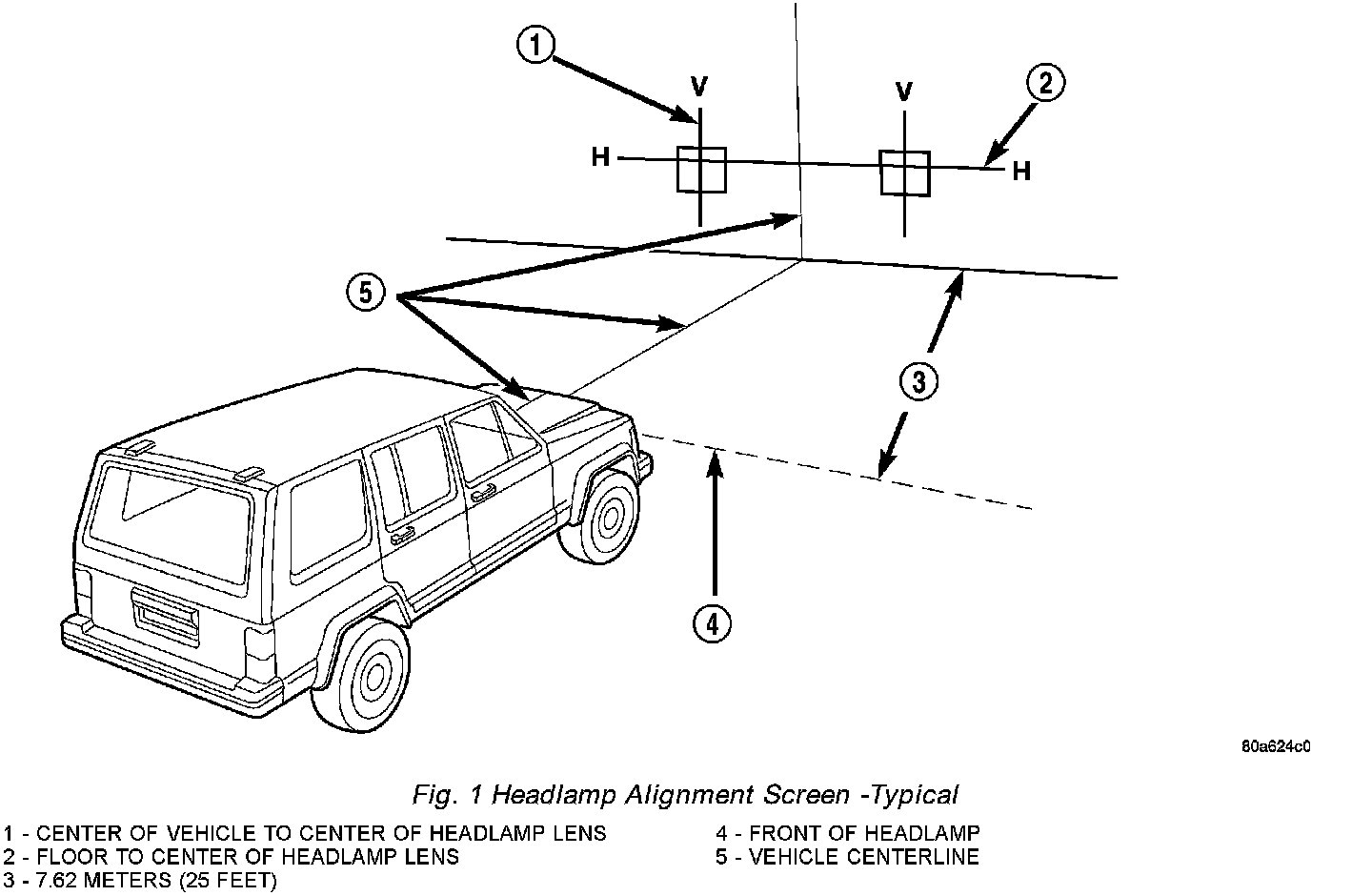 1. Position vehicle on a level surface perpendicular to a flat wall 7.62 meters (25 ft.), export vehicles use 10 meters (32.8 ft.), away from front of headlamp lens .
