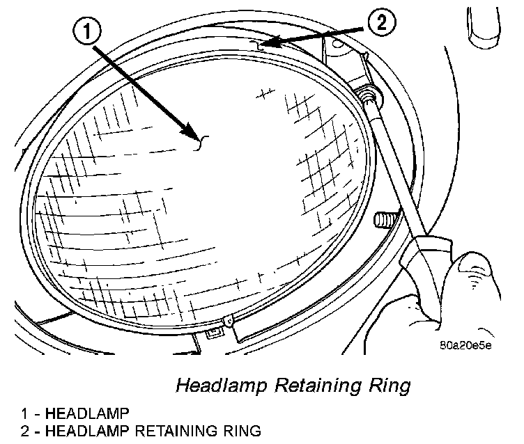3. Remove the screws that secure the headlamp retaining ring to the headlamp bucket .