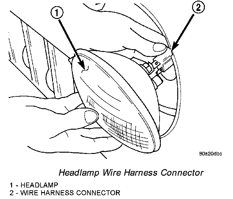 4. Remove the headlamp from the bucket and disconnect the wire harness connector from the headlamp .