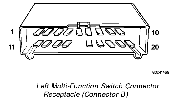 Left Multi-Function Switch Connector Receptacle (Connector B):
