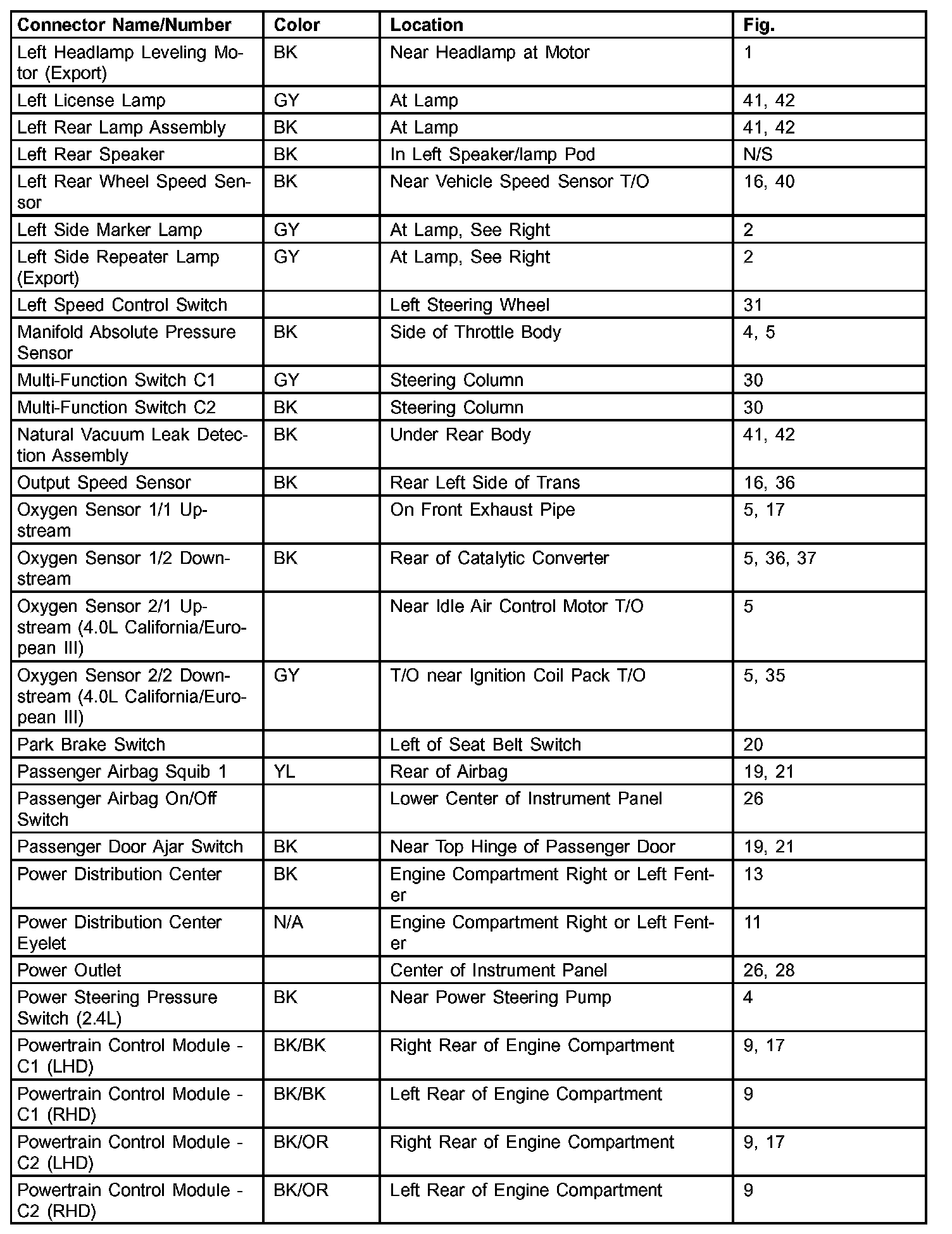 If a link on the index chart to a figure is not provided, that means that the connector and/or figure in question does NOT apply to the vehicle model selected.