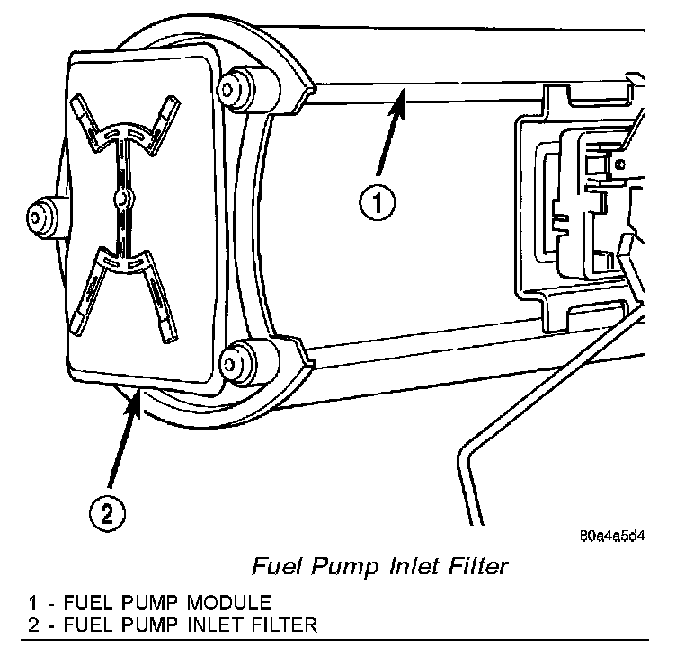 The fuel pump inlet filter (strainer) is located on the bottom of fuel pump module. The fuel pump module is located on top of fuel tank.REMOVAL